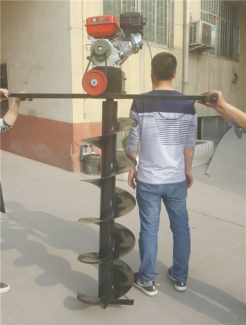 螺旋鉆機是由大馬力四沖程進口發動機配置,機型功率強大,操作簡潔,使用方便,汽油機無需混合,更易保養。每小時只需用油0.6L,可打坑100個以上,可連續性作業而機器不發熱。雙人操作,安全可靠,是一款節能型鉆地機器。工作原理:以汽油機為動力,配置直傳式無級變速減速箱體,連接鉆頭旋轉進行挖坑作業,并且將坑內土帶出或旋出坑外。該機鉆頭采用合金錐形螺旋,配置進口汽油機,移動方便,適用于多種地形。可用于7米,8米,10米,12米,15米電線桿挖洞作業,效率高,挖坑速度快。還可以用于電力、電信、市政、高鐵、高速、公路、建筑、石油、林木等各種土質層上面的柱桿、木樁、橋墩、林木等鉆孔工程,實現多功能特點。施工效率高,是理想的基礎施工設備。電線桿打坑機由大馬力四沖程進口發動機配置,機型功率強大,操作簡潔,使用方便,汽油機無需混合,更易保養。每小時只需用油0.6L,可打坑100個以上,可連續性作業而機器不發熱。雙人操作,安全可靠,是一款節能型鉆地機器。